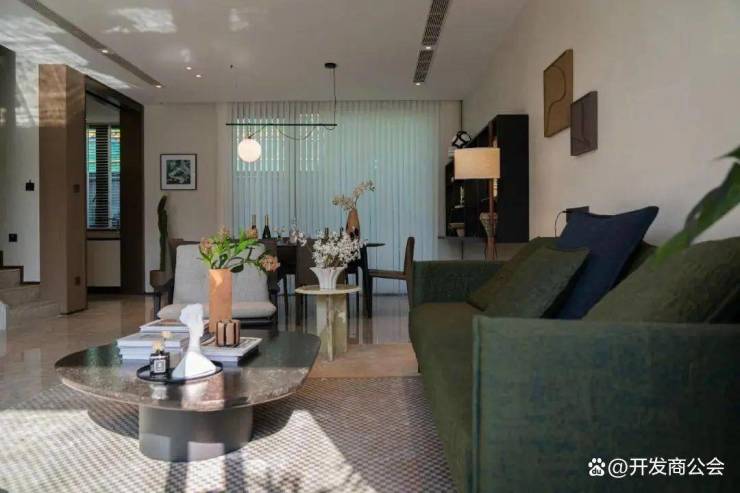 户型A为三层排屋,带地下室、庭院和花园露台,将山水与城市有机融合,推窗见绿,以现代手法打造东方美学居室,让建筑与自然和谐共生。
