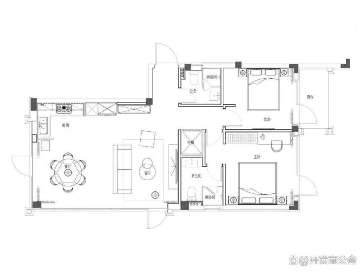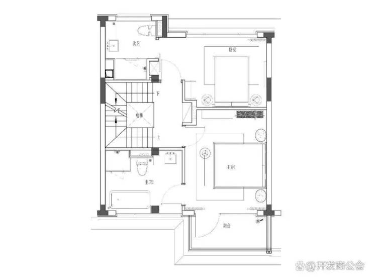 二层设置两间卧室,分别设置独立卫生间,其中一间卧室享有户外阳台。