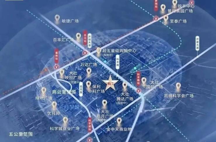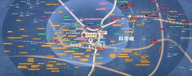 大壮名城·名门占据城市核心地段——科学城核“芯”黄金2公里(科丰路与开创大道的十字路口交汇处),集聚政务中心、商贸中心、发展中心于一体