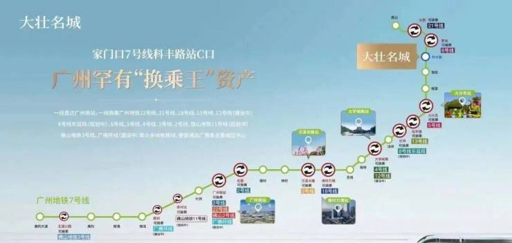 7号线——科丰路站步行大约900米左右,7号线全程途经科学城-老黄埔-大学城-万博CBD-广州南站-陈村-北滘