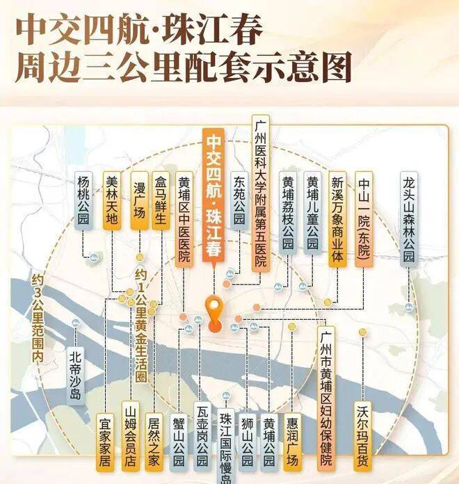 医疗:中山一院东院、广州医科大学附属五院、黄埔中医院等三甲医疗资源齐聚,生活无忧。