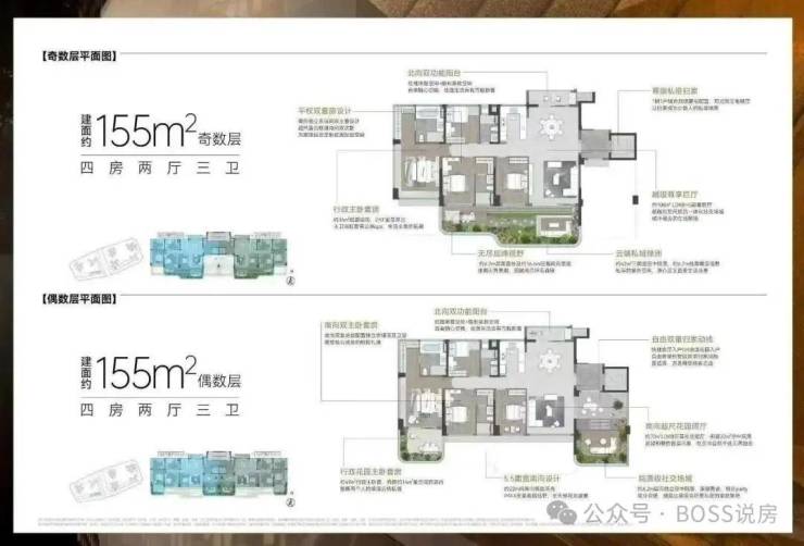 【建筑布局】为了尊重每一寸景观,整体建筑以点式围合中心花园、户户向南、户户空中花园,塑造最佳的视野朝向,私属空中花园将景观延伸至空中收藏于室内