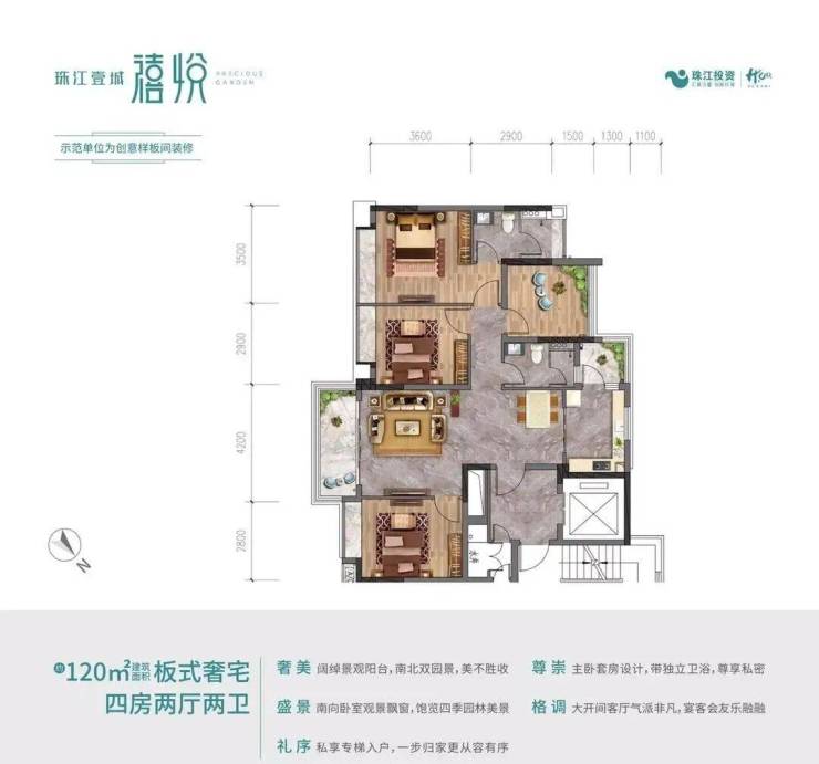 —— 建面约120㎡四房两厅两卫 ——