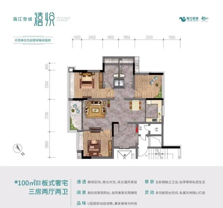 —— 建面约100㎡三房两厅两卫 ——