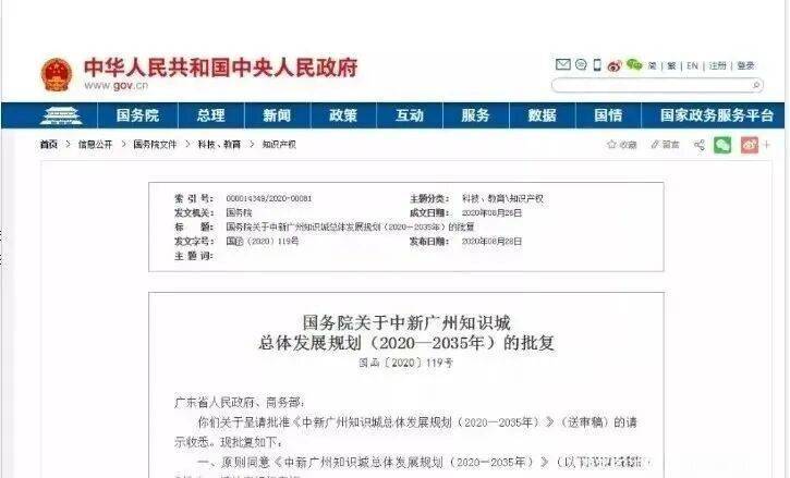 国务院批复中新知识城总体规划发展规划(2020-2035年),中新知识城的发展被正式列为国家战略;