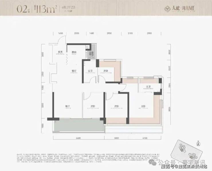 02户型的113平4房2卫,和05是一样的户型,但02是朝南看海景的: