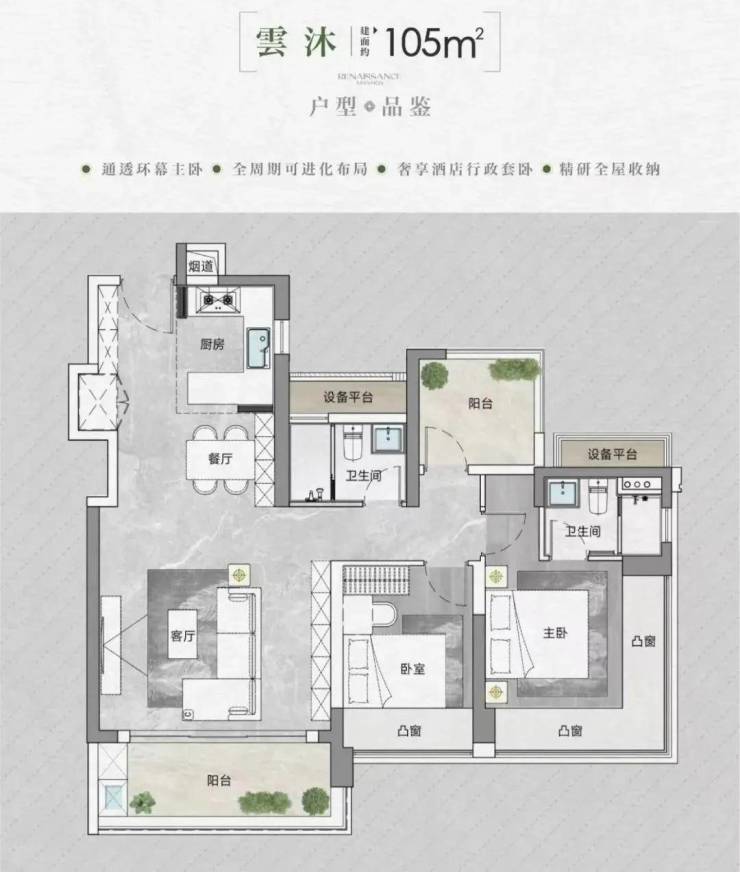 意蕴传承 栖心美学:项目在整体风格上取意南洋文化,对标高奢酒店的设计审美,呈现都心桃源般的住假生活。