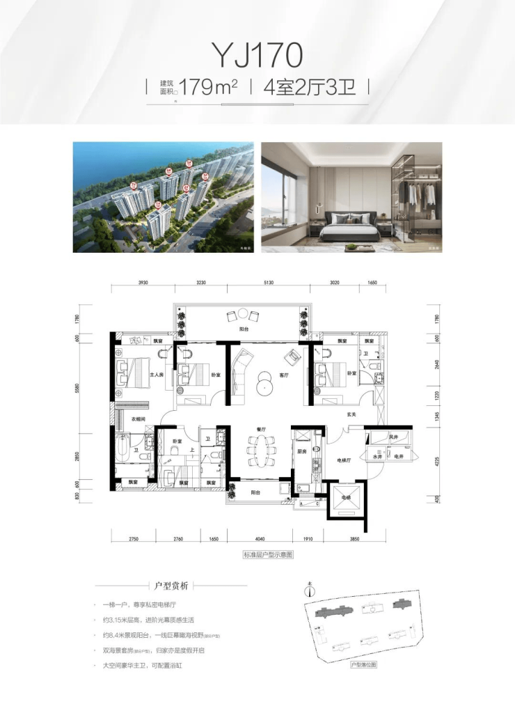 进阶奢适宽居大宅,舒享户户双阳台,约3.15米层高(部分户型),YJ170/260奢配双海景套房(部分楼层),视野通透开阔,悉数收藏每一幕与家人共度的海居日常。
