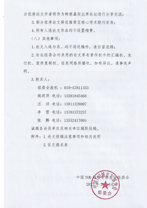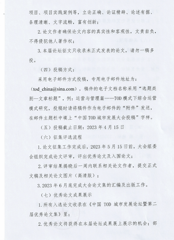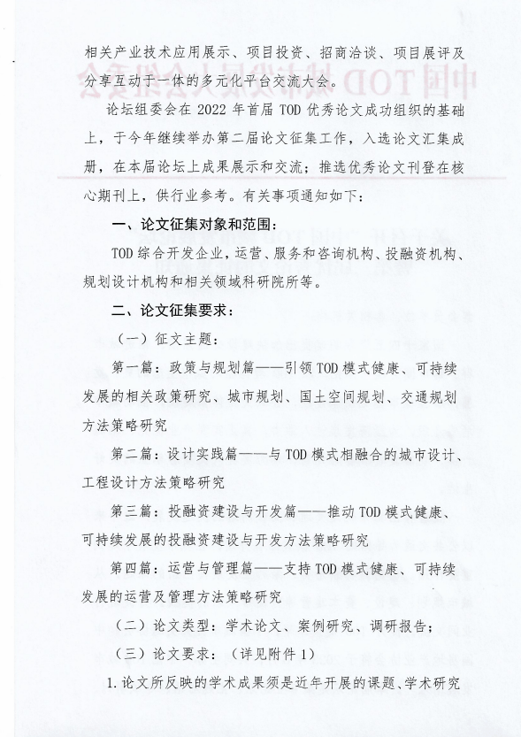 论坛组委会在2022年首届TOD优秀论文成功组织的基础上,于今年继续举办第二届论文征集工作,入选论文汇集成册,在本届论坛上成果展示和交流;推选优秀论文刊登在核心期刊上,供行业参考。有关事项通知如下: