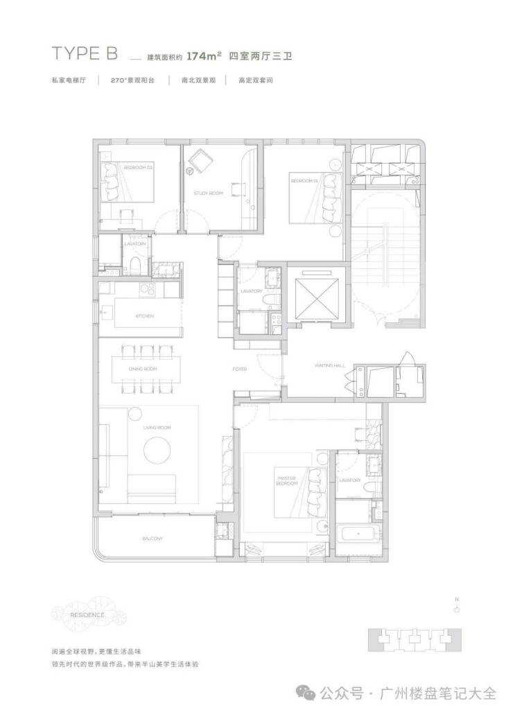 【174㎡户型】独享私家电梯厅-270度环幕观景阳台-高定双套间