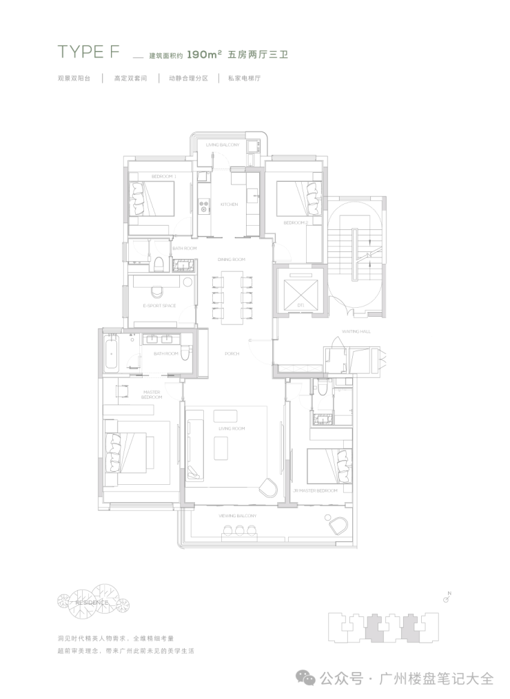 【190㎡户型】观景双阳台-高定双套间-私家电梯厅-双洄游动线