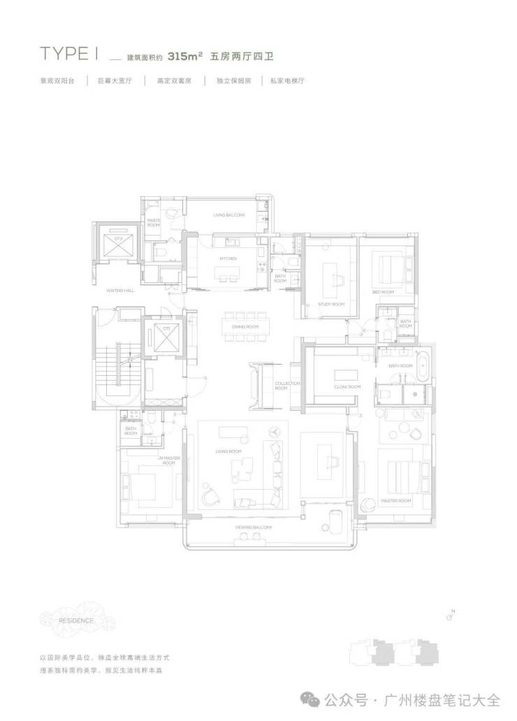 【315㎡户型】南北双阳台-独立保姆房-巨幕大宽厅-私家电梯厅