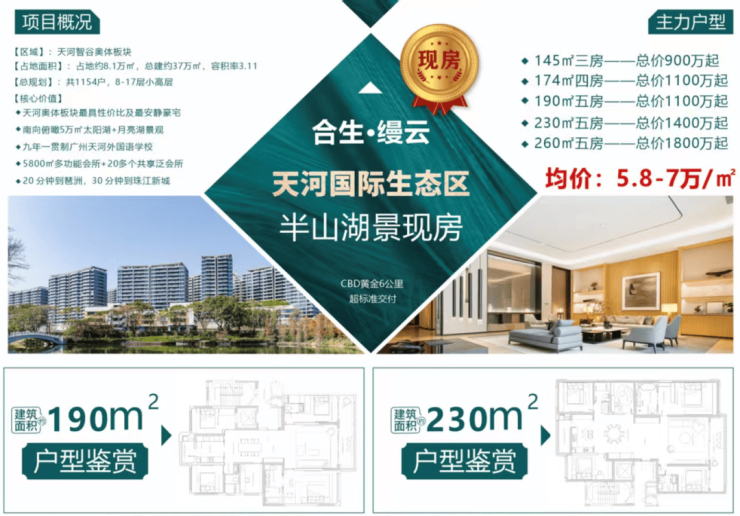 生态景观:位处天河国际生态区,约 71 万㎡城市林海景观围绕,紧邻约 2 万㎡月亮湖