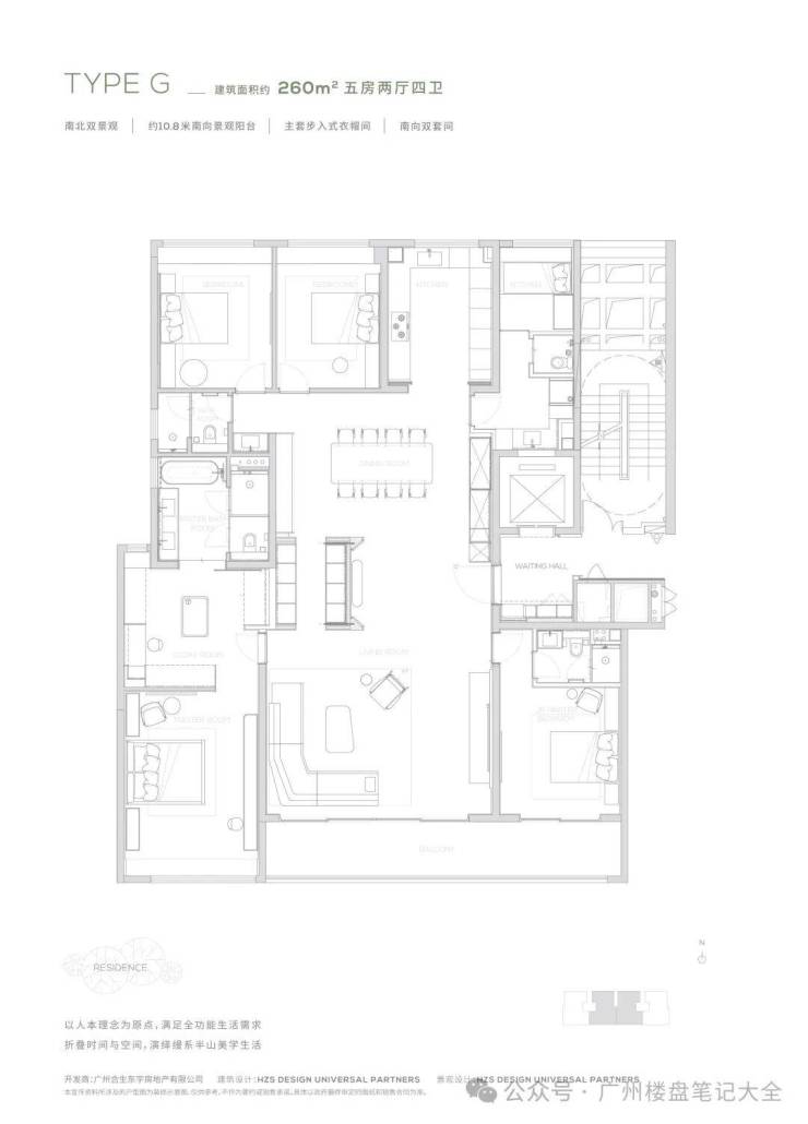 【260㎡户型】超10米南向景观阳台-南北双景观-主套步入式衣帽间-独创灵动岛设计,生活场景多重切换