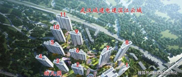武汉城建电建滨江云城占地面积约7.8万方,总建面约32.2万方,容积率2.99,共1537户,机动车停车位2372个,车位比约1:1.54。包含11栋住宅、约3.2万方办公、约1.2万方商业,以及1所幼儿园。