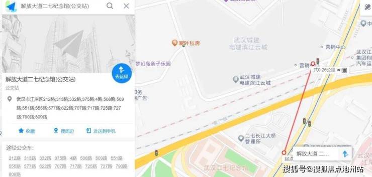 公交方面,解放大道二七纪念馆公交站的线路比较多,截图如下,距离项目约200多米。