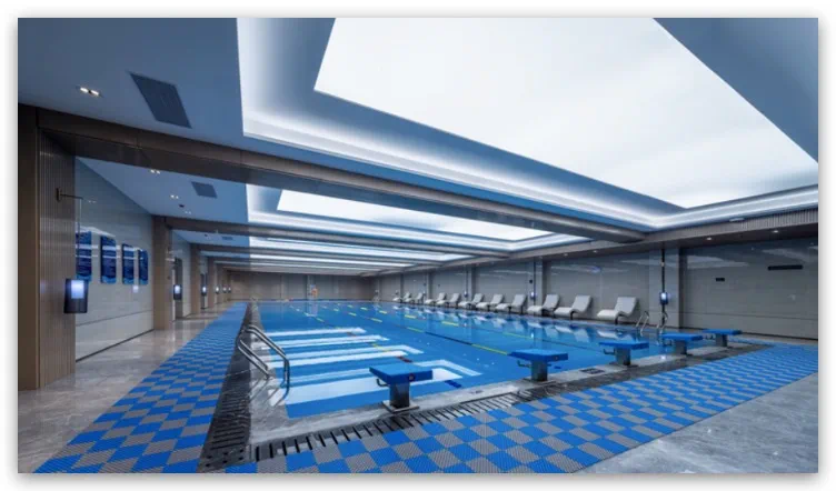 再比如石家庄荣盛首府,从“新精致人群”的实际需求出发,打造了石家庄首座下沉式观景生活馆,拥有游泳馆、健身房、儿童学堂、业主食堂、社区会客厅等八大功能中心,业主可以在社交、运动、休闲的同时欣赏到园林景观,构建无界乐活、多元互融的生活场景。