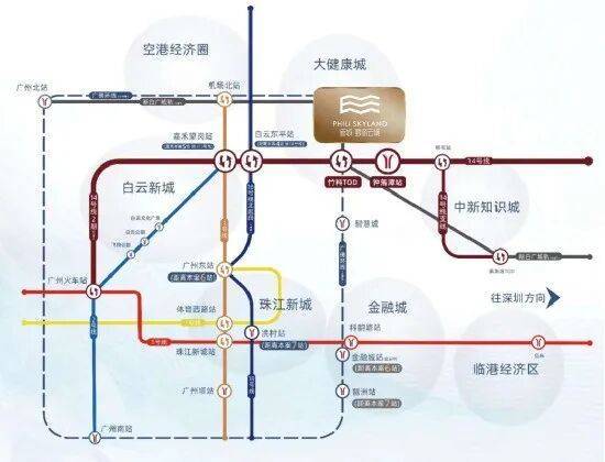 新白广城轨(预计2023年通车)1站白云机场,南向通达东莞和深圳