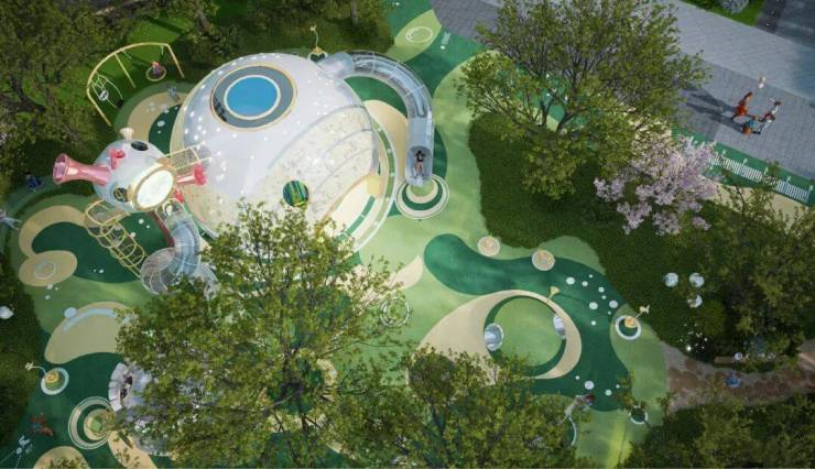 约7.9米挑高架空花园,与七珍馆七大架空主题空间相互联动,构成社区里的“第二客厅”,更是全龄共享的邻里社交场,让不同年龄的家人都能在此找到互动乐趣。