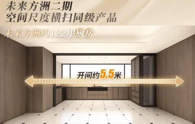 并且其厨房开间竟阔达约5.5米,要知道,常规120+平面积段的厨房,开间通常只能做到3米左右!
