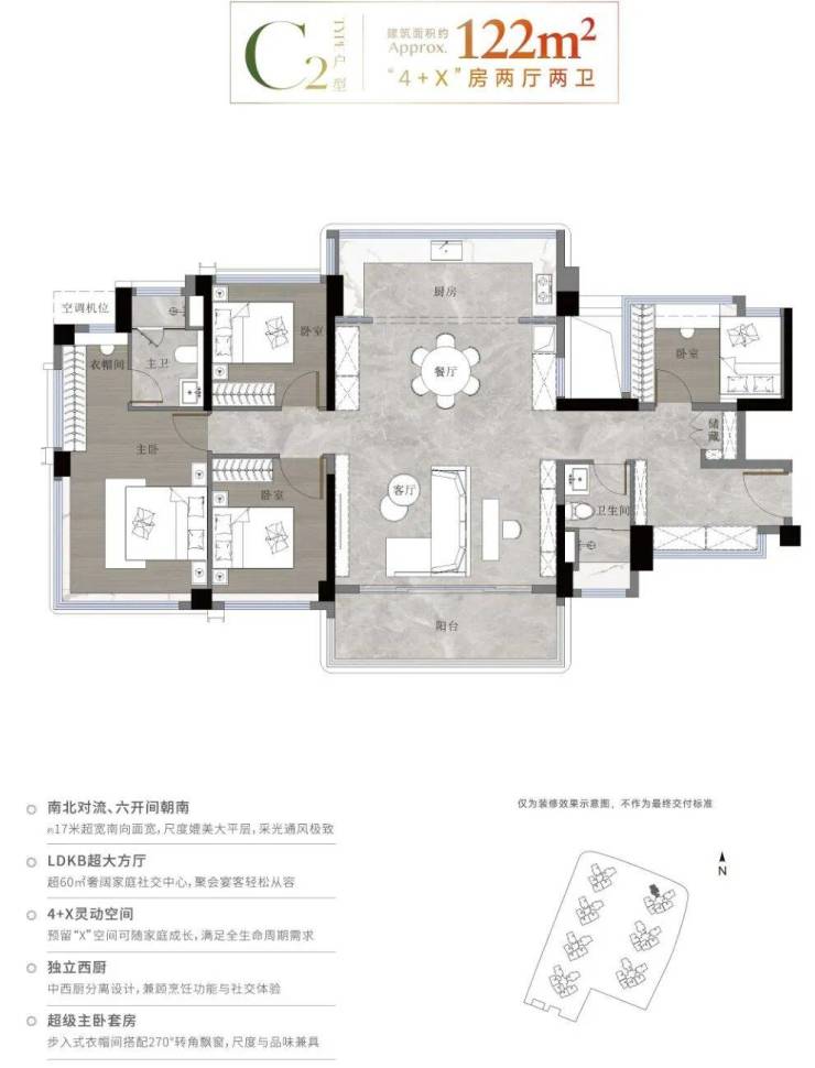 而无论是超60平LDKB,还是约5.5米超级厨房,正常来说,都不会出现在160平以下户型,更遑论一个区区122平的户型!