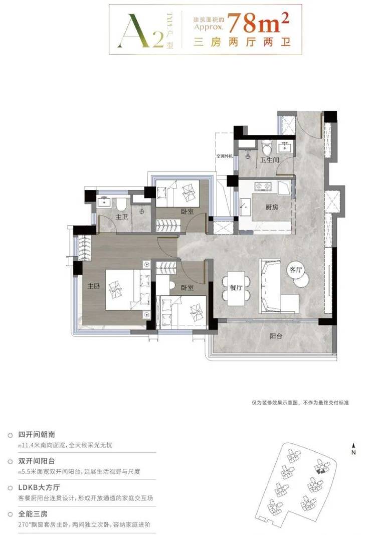 二期就砍了更大的面积段,只做3个户型,78平面对上车客群,96平兼顾舒适度的大三房和小四房,122平面向家庭客。