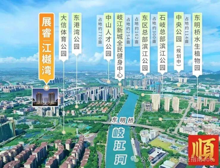 中山展睿江樾湾,是展睿集团于中山市西区(或南区,视具体临江位置而定)岐江一线江湾处打造的高品质滨江住宅社区。项目占据蜿蜒江道的优质岸线,以“江湾生活”为核心理念,旨在为钟情水岸栖居、注重自然生态环境与优质教育资源的城市改善型家庭,打造一处兼具稀缺江景资源、舒适社区氛围与成熟生活配套的静谧雅致家园。