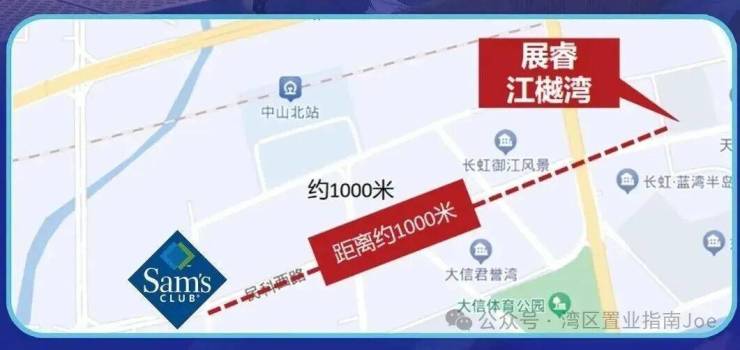 周边配套方面,商业资源丰富:距离中山首家山姆会员店约 1000 米