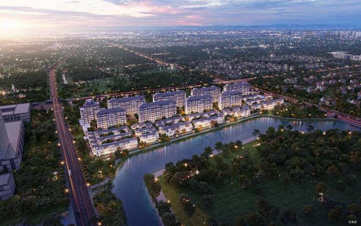 保利西郊和煦南侧拥有约500米原生水岸+约20米宽生态河道+约180°河景,地块天赋极高。