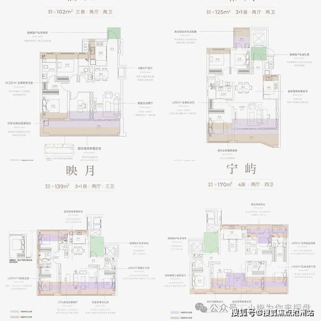 硚口城建文澜序项目总共包含6栋住宅,1-5号楼总高47层,6号楼总高33层。小梅打听到首推1号楼户型包含建面约102、125平两个面积段,项目首开户型都能做到专梯专户效果,KFS宣传首开户型使用率超100%,来看看具体户型图