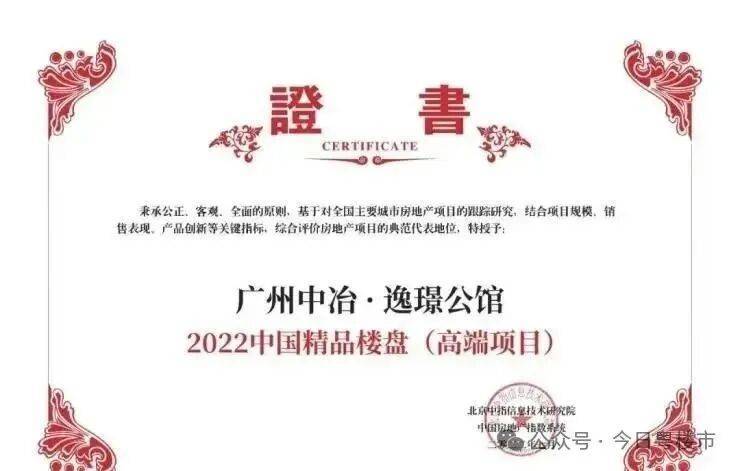 中冶·逸璟公馆从拿地到开发,出生便载誉而来,其所在的地块是当年海珠的楼面最高价,开盘后刷新区域一手豪宅的售价,同时荣膺“2022中国精品楼盘TOP1(高端项目)”。项目仅有48套,并且是广州目前仅有的一手城芯院墅。