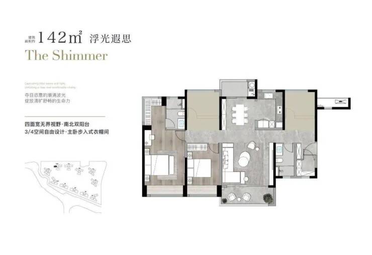 东区为住宅组团,有滨水园林,近地铁和商业,有精英要的奢享及高效;