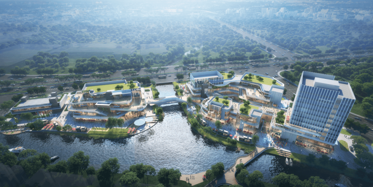 南区为滨水商业,是逛街也是逛公园,透着自在气息和时尚烟火气。