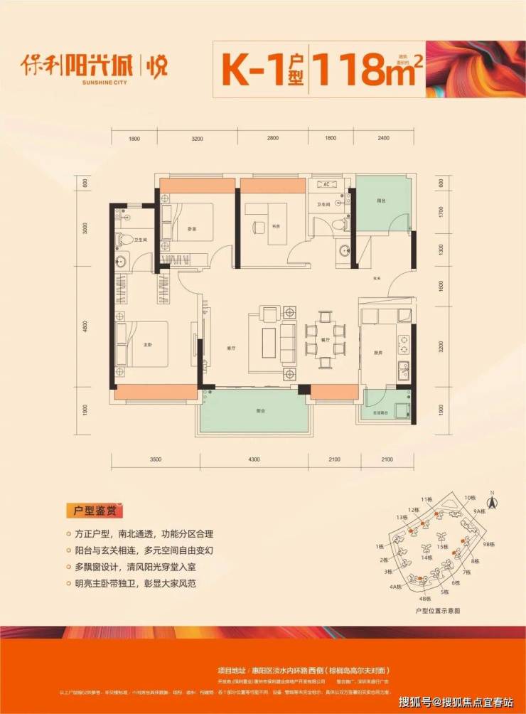 项目紧靠深圳坪山新区,4km即是惠州坪山交接处,深圳地铁14号线沙田站(已封顶,预计2022年年底通车)距离项目仅5公里,后期深圳地铁14号线延长线会经白云新城延伸至惠州南站,项目离白云地铁站仅1.7公里距离,距离惠州南站只有15分钟车程,门前内环路为城市主干道,连接白云路与人民路,通达整个城区,同时经淡水高速出口,坑梓高速出口,走沈海高速,90分钟可以通达深圳全境,完善的交通组网,是保利阳光城赢得客户青睐最大优势。