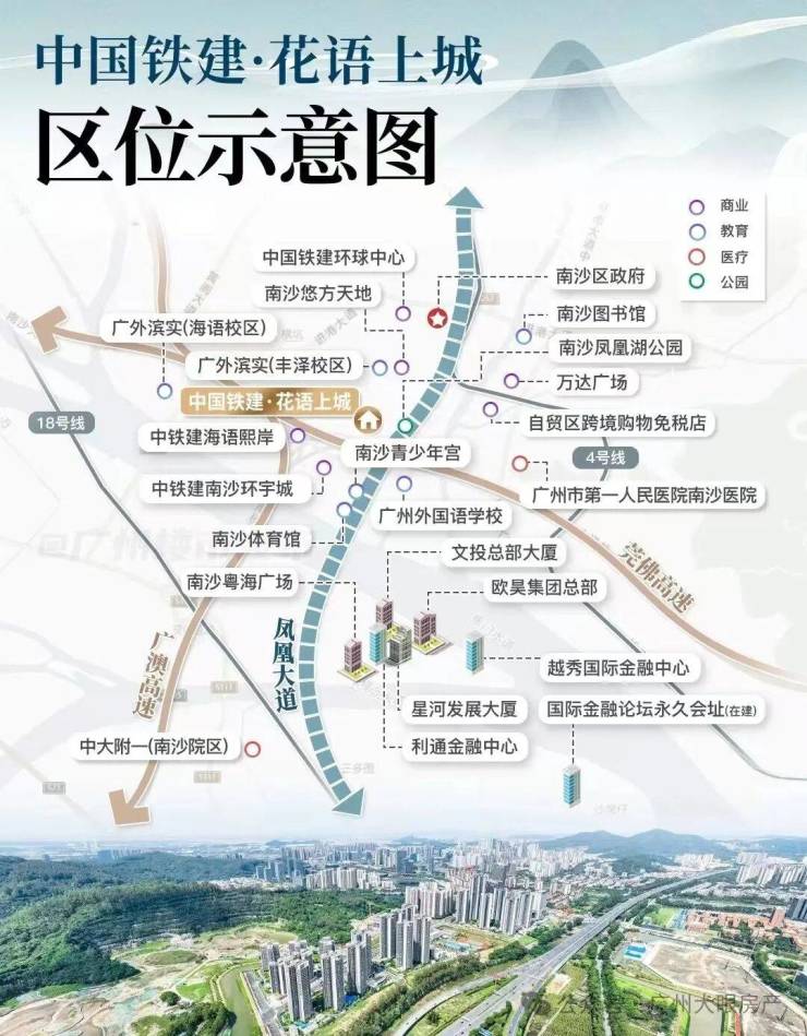 花语上城紧挨海语熙岸兄弟盘,地处南沙中芯,区府核心地段,出门就是南沙新中轴“凤凰大道”,南至明珠湾、北接庆盛、东达南沙湾,西通黄阁。