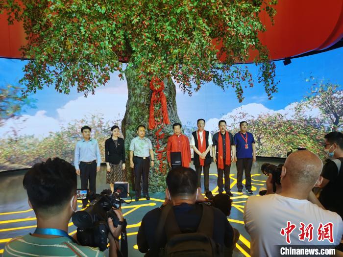 在红枣小镇,众多与会嘉宾齐力打枣。同时通过全民直播、VR实景等形式在线上展示现场盛况,打造云枣园、云展厅、云游记三大板块,实现全民互动打枣。