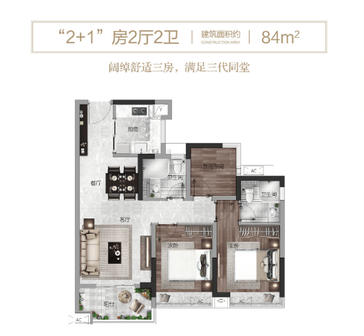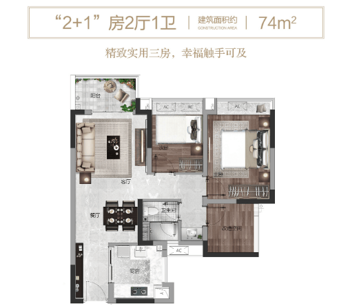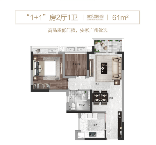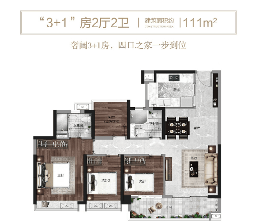 项目于2018年年底拿地,所提供的“粤府系”高标建筑装修,面积较大且每种户型多送一个房间。