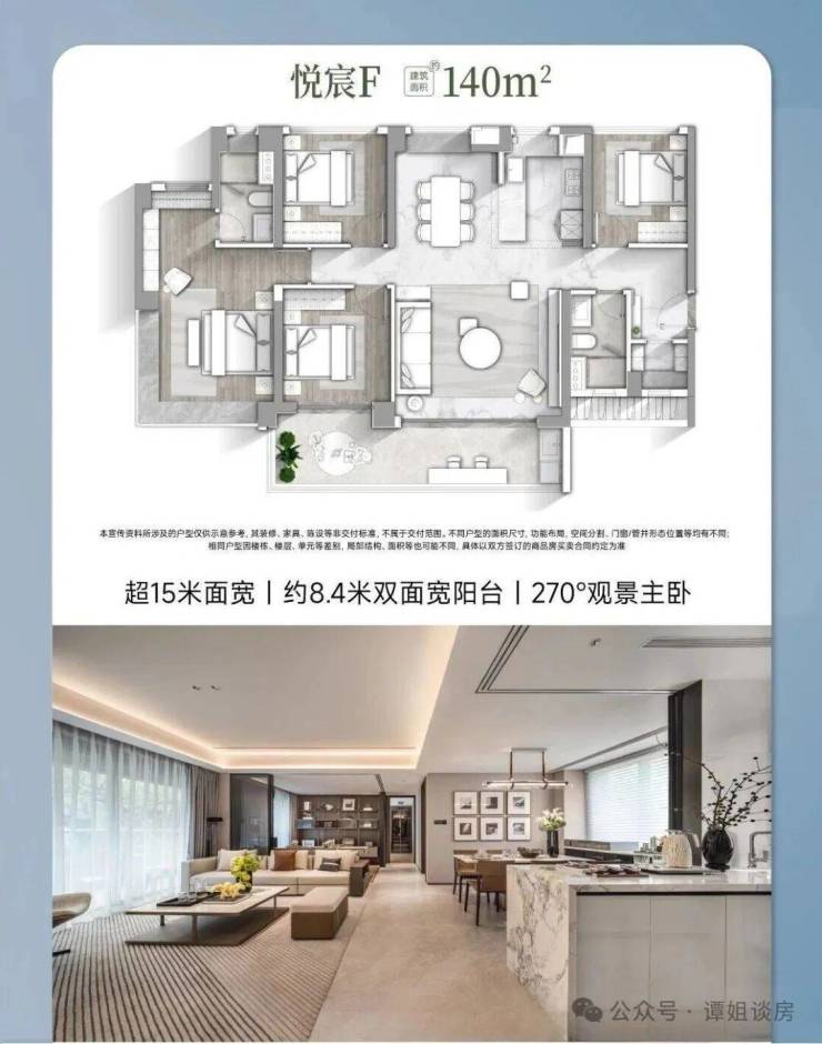 这回二期新上的产品,主卧基本全是采用全新的研发成果——天空之境,即270度U型无遮挡柱的全画幅飘窗景观。