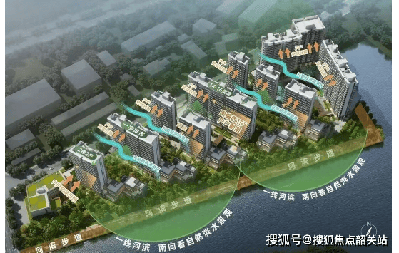 社区内部也打造了约1.2万㎡滨水生态园林,沿石榴岗河规划了800米河岸步道