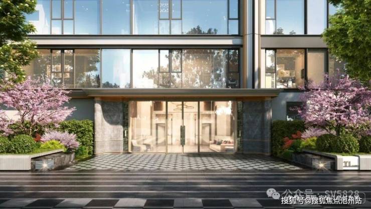※ 云栖繁花:近60米长、约7米高的恢宏大门彰显业主尊荣,弧线流畅延展,奢华石材精心点缀,门头采用三重檐“理想之花”设计,层层递进如花瓣绽放,如入繁花流水之境。