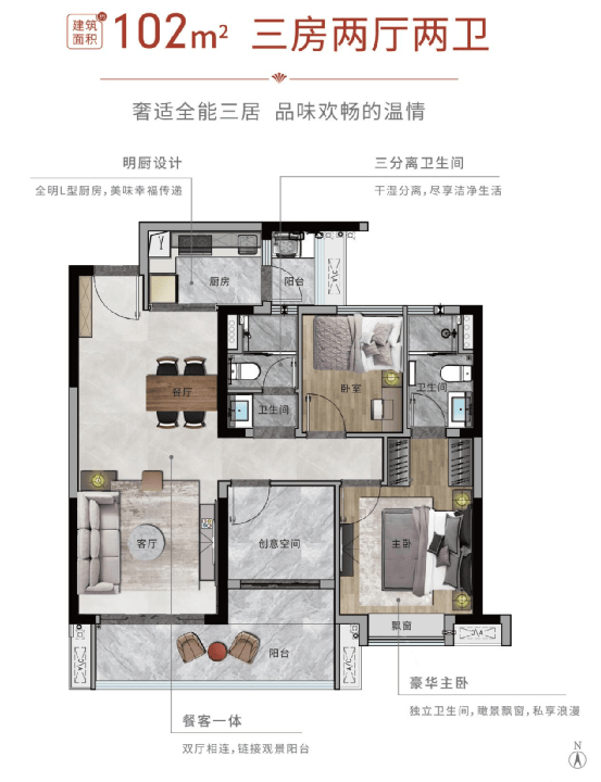 建面约102㎡2+1房,可以满足更加多元的“空间诉求”。