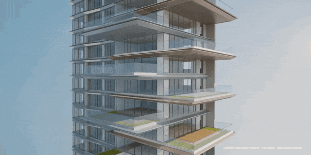 挑檐如同优雅的羽翼,隔绝了楼层之间的视线交汇,让云端私密空间得以实现。