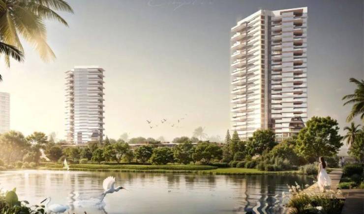 顺德澐璟身处以国际IUCN标准打造的鹭鸟主题湿地公园,宛若从公园里长出来。项目通过“引水入园”的规划,将与桂畔水脉相承,形成了外有“护城河”、内嵌中轴水景的尊荣感。