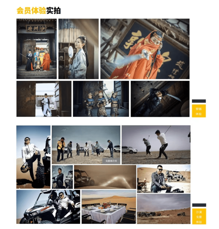 依托场地资源、车辆资源、设施资源和装备资源,玄鸟汽摩俱乐部开设有多条极具特色的旅游体验线路和多种主题的定制游玩产品。排名前列,涵盖摩托穿越、越野车穿越在内的穿越定制线路,包括无人区穿越和沙漠穿越等小众深度玩法,为团队及个人提供专属定制旅行和特色体验,目前有“阿尔金山穿越之旅、穿越大海道、敦煌小环线、甘青探秘之旅、永无止尽穿越之旅”等。第二,涵盖沙漠露营和戈壁露营在内的户外露营体验。第三,涵盖沙漠徒步、戈壁徒步在内的特色徒步项目,目前有“奇遇·敦煌”定制亲子徒步体验、重走“玄奘之路”、丝绸之路、峡谷探秘经典徒步体验等。