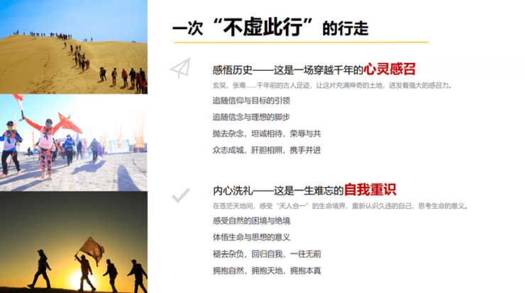 据透露,玄鸟汽摩俱乐部在2022年推出了更多、更新、更有趣的户外线路及活动,其中有近两年大火的“罗布泊大海道无人区”穿越线路,途中的神秘火星地貌以及神奇传说故事,惊艳了众多体验者,这条线路可自驾,可跟车越野,也可摩旅骑行,一路赏遍风光磅礴。此外,玄鸟汽摩俱乐部特别的“冰与火·沙漠雪山”穿越线路也备受好评。一路驰骋,穿越戈壁、雅丹地貌、沙漠,进入天然草原,环着连绵群山,享受无人之境的壮美风光,歇息时可饮一壶奶茶,吃几串高原羊肉,还能骑马放牧、住毡房,在哈萨克风情的热情歌舞中,优哉游哉地将自然之美尽收眼底。张静谈到,除以上特色穿越线路外,敦煌周边穿越、戈壁沙漠露营,以及亲子活动、徒步挑战等活动和玩法也非常值得体验。