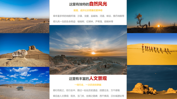 张静谈到,游在敦煌,每一次外出都有可能获得新的发现和体验。敦煌的地理位置特殊,地处丝绸之路西部,与新疆、青海、内蒙古临近,戈壁和沙漠是来这里必体验的两种地貌。依靠得天独厚的大漠风光和戈壁特色,敦煌常年吸引大量旅游爱好者前来观光和游玩。著名的景点有敦煌莫高窟、鸣沙山、月牙泉、阳关、玉门关等,古诗词中的“西出阳关无故人”和“春风不度玉门关”等名句,在敦煌皆能找到实景。以上是敦煌游较为常规的一些玩法,很多年轻人也会去探索一些深度游路线等非常规的路线,例如沙漠穿越之旅等特色线路。