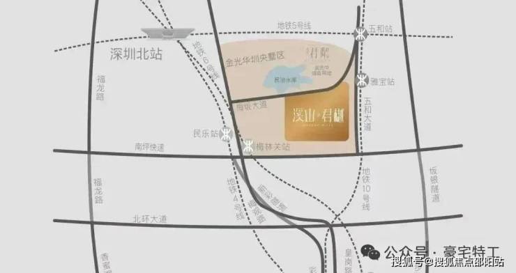 项目最近地铁为10号线雅宝站,步行约5分钟左右即可到达,可通过该站向南一站到达9/10号线孖岭站,向北三站到达5/10号线五和站。