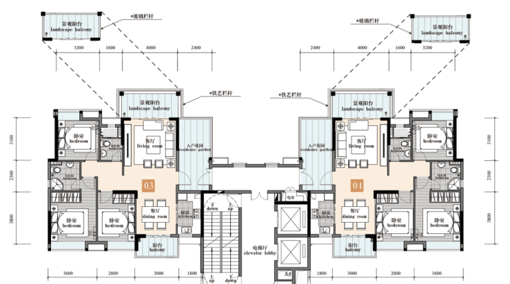 建筑面积约122-229㎡三/四房,户户南北通透,2梯4户的点式设计,具有非常好的采光和通风效果。
