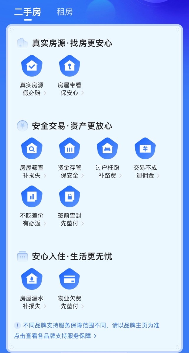 品质始终是贝壳的生命线,贝壳做的是品质的生意。在这些承诺类目中,“真房源”作为贝壳的入驻标准,实现了七大新经纪品牌覆盖,即用户发现虚假房源,可获得一百元赔付。