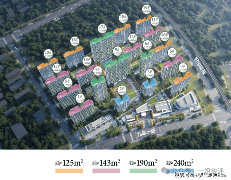 深业翠微谷总建面约27.9万方,容积率约2.00,主要由19栋13-25层的小高层、高层住宅组成。整体体量比较大,容积率较低。